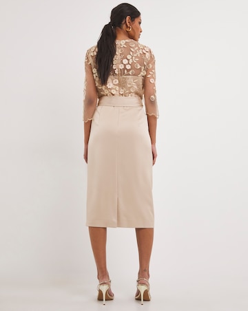 Joanna Hope Latte 3D Lace Scallop Sleeve Satin Midi Dress