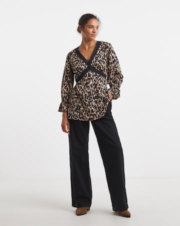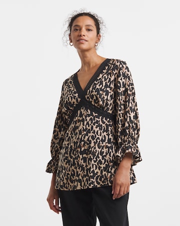 Our lace trim top will make any outfit feel dainty and feminine with its flattering design and contemporary leopard print. Dress it up with black denim and boots for an effort...